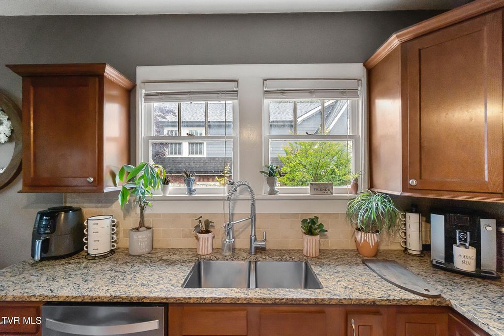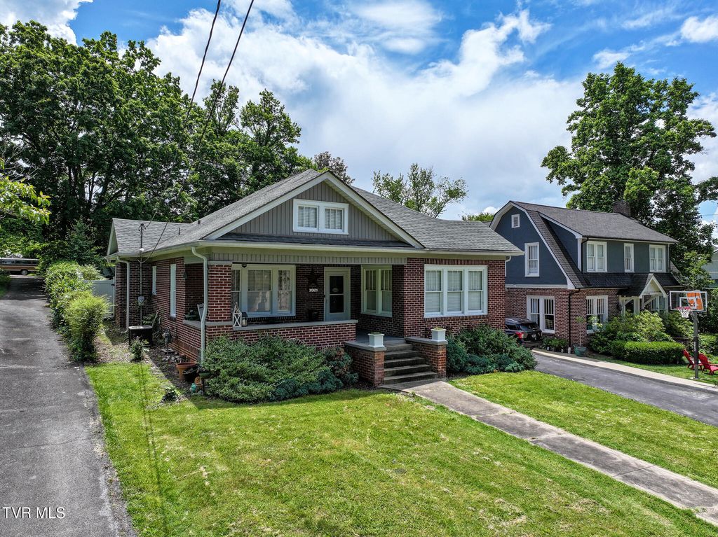 Welcome to your new home! Nestled on Main Street in the heart of historic downtown Greeneville, this classic Craftsman-style brick home is full of character, charm, and thoughtful updates. With a solid brick exterior and newer roof, this home offers both low-maintenance living and enduring style. Inside, you'll find original hardwood floors that flow through the spacious living and dining areas. The living room features beautiful built-in bookcases flanking a cozy fireplace, perfect for displaying treasured books or décor. French doors lead into a bright and inviting sunroom, currently used as a comfortable third bedroom, offering flexibility for guests or a home office. The dining room is ready for gatherings, featuring original architectural details that complement the home's timeless design. Just off the dining room, the remodeled kitchen boasts granite countertops, marble tile floors, stainless steel appliances"”including a sleek stainless hood over the stove"”and abundant cabinet and storage space. The thoughtful layout provides excellent workflow for everyday cooking or entertaining. Both bathrooms have been tastefully remodeled, blending classic charm with modern convenience. The two main bedrooms are spacious and inviting, and the front bedroom includes built-in shelving that adds both function and character. The mudroom & laundry area, at the back door, also give interior access to the basement & attic stairs. The area is narrow to the attic, so please only look from the stairs. No flooring in the attic. After a long day, relax on the large front porch"”a perfect retreat to take in the cozy beauty of downtown Greeneville. With its blend of historic craftsmanship and modern updates, this home is truly one-of-a-kind. Don't miss your chance to own a piece of Greeneville's rich history. Schedule your private tour today! Buyer/Buyer agent to verify all information taken from seller and public records.