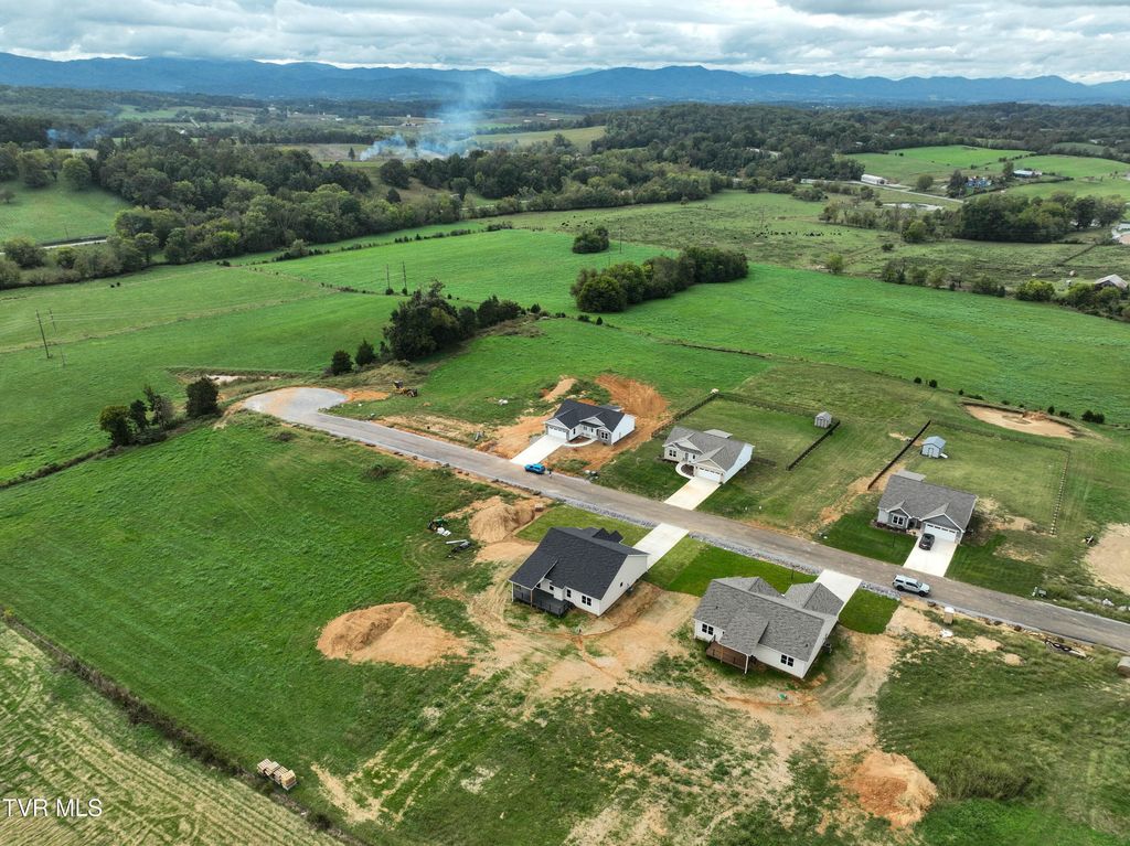 NEW CONSTRUCTION Red Tall Ridge Subdivision - just outside the Greeneville City Limits - Completion estimated October/November 2025. This 3 bedroom / 2.5 bath open concept floor plan features cathedral ceilings in the great room and tray ceilings in the primary bedroom, large pantry, granite counter tops and tile backsplash in the kitchen and cultured marble countertops in the bathrooms. Primary bath has a tile shower surround and glass door enclosure. Beautiful shiplap fireplace with propane gas logs. There is a HUGE partially covered Trex deck to enjoy the mountain and countryside views. Red Tail Ridge has underground utilities and a new fiberoptic cable option. The community also has charming, coordinating street lights and all exterior finishes are complimentary. See survey in documents. *Taxes are estimated*